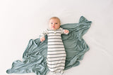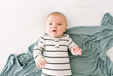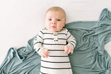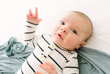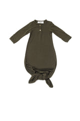 This buttery soft baby gown is breathable, snuggly, and will keep baby super comfy. These stretchy gowns feature an open bottom that easily ties and unties--perfect for keeping toes toasty warm and making diaper changes a breeze. Soft fold over cuffs keep tiny hands warm and prevent baby from scratching. Two gold front buttons add polish and complement this stylish gown. This is the ultimate baby gift!