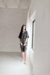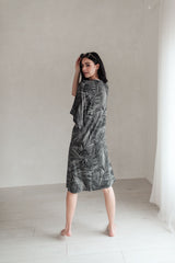 Grey with black palm frond print